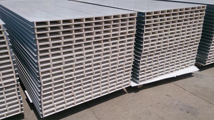 中空玻鎂彩鋼夾芯板以二層5mm防火玻鎂板、中間加防火玻鎂內(nèi)隔條為芯材,經(jīng)彩鋼夾芯板多功能連續(xù)生產(chǎn)線(xiàn)復(fù)合成型,中空玻鎂彩鋼夾芯板其特點(diǎn)...